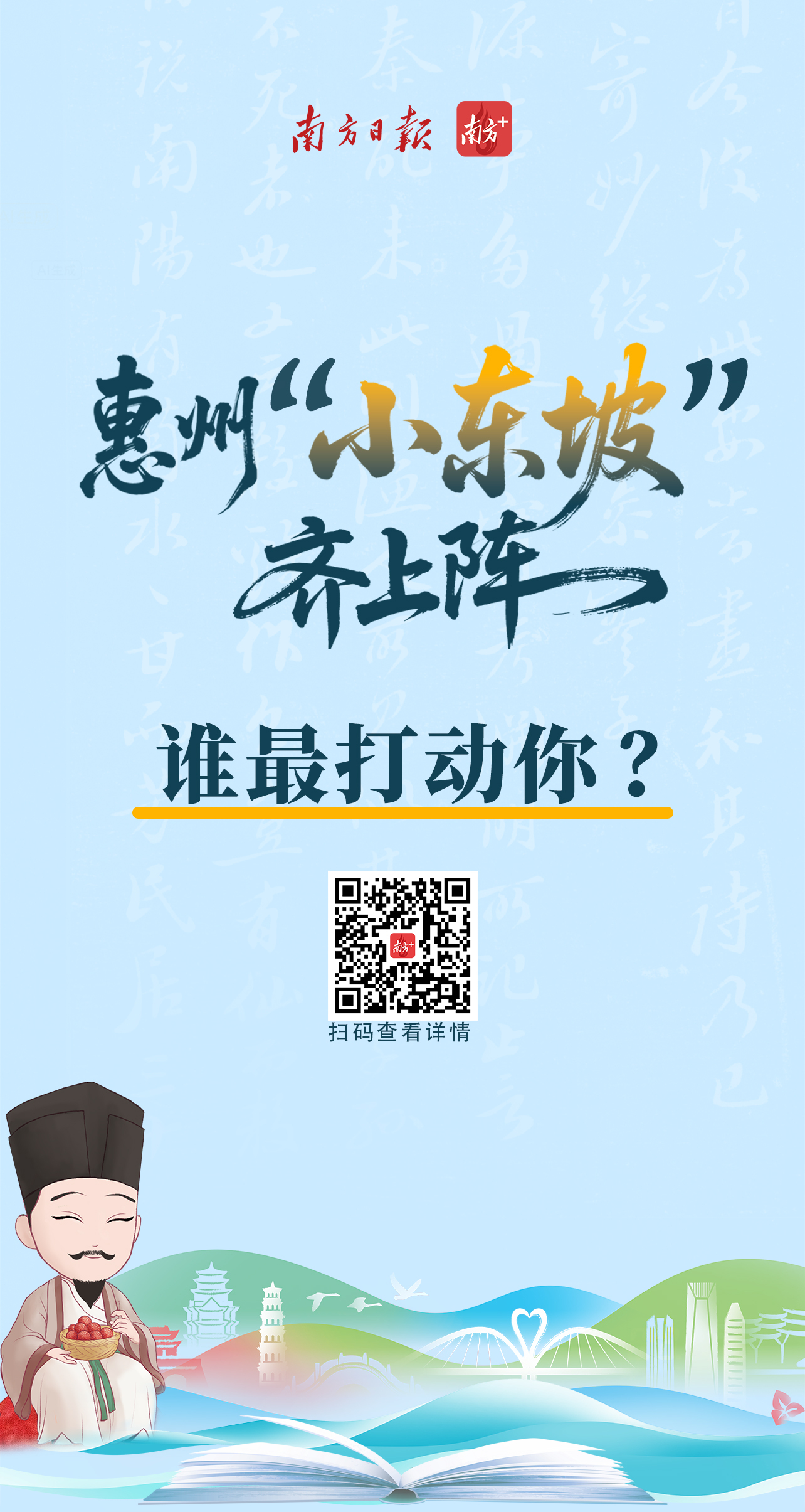 跟着前期作品集结及初选责任甘休,即日起,赛事组委会将依托南边+平台逼近展播入围的优秀作品,同期增设东坡系列节目“集结东说念主气奖”,哪个作品最打动您?快来为您心爱的“小东坡”来助力吧!